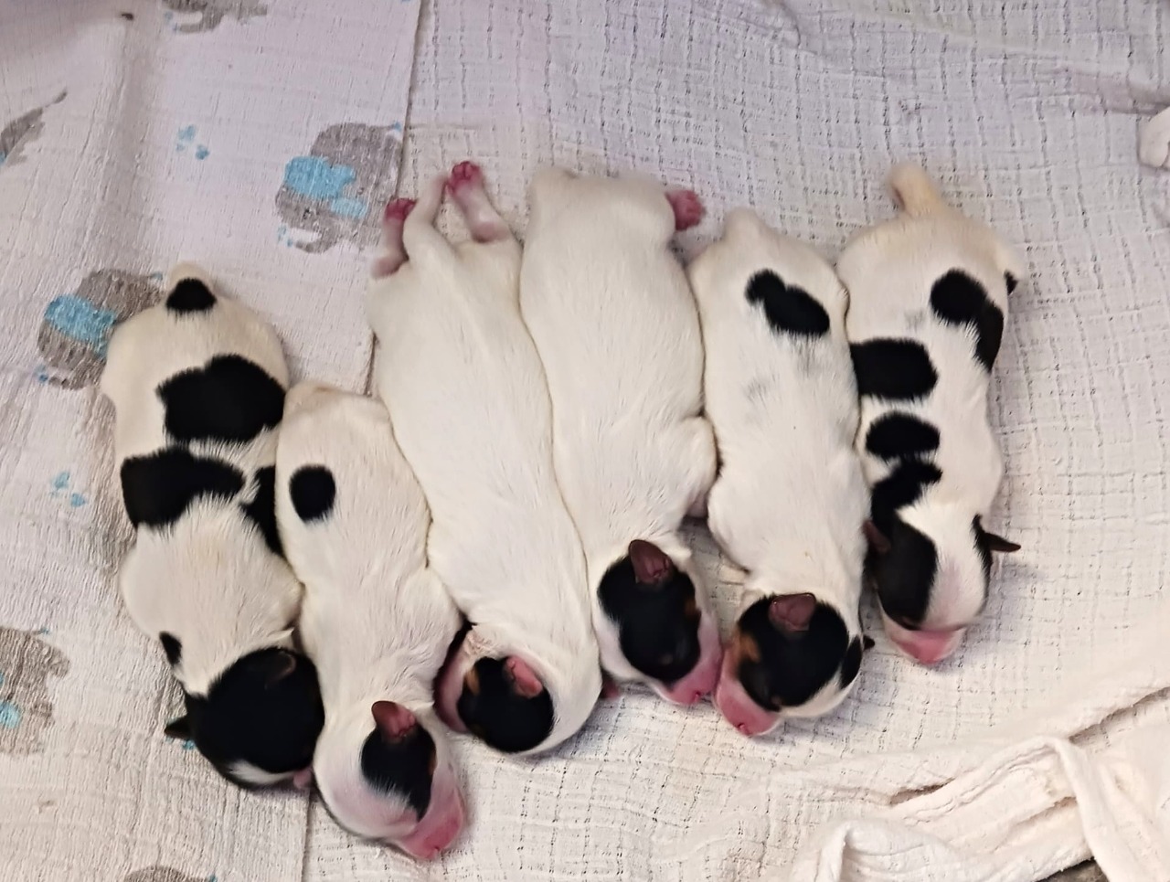 Dne 27.10.2025 se nám narodila kouzelná miminka biewer terrier, tři klučíci a tři holčičky, více foto